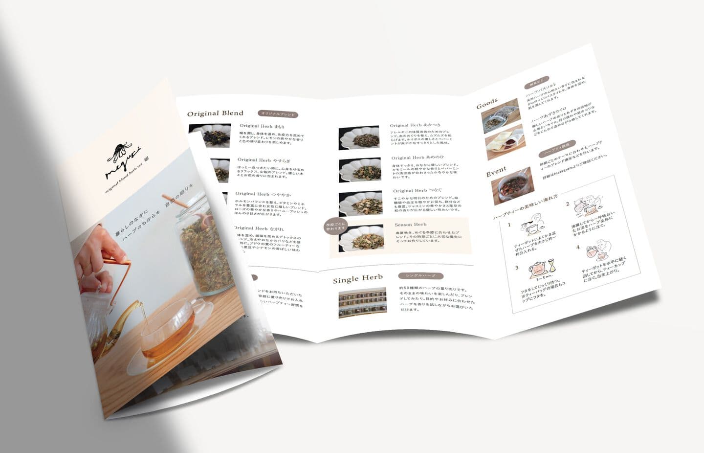 ハーブティ専門店「廻(meguri)」さまのリーフレットを制作させていただきました。