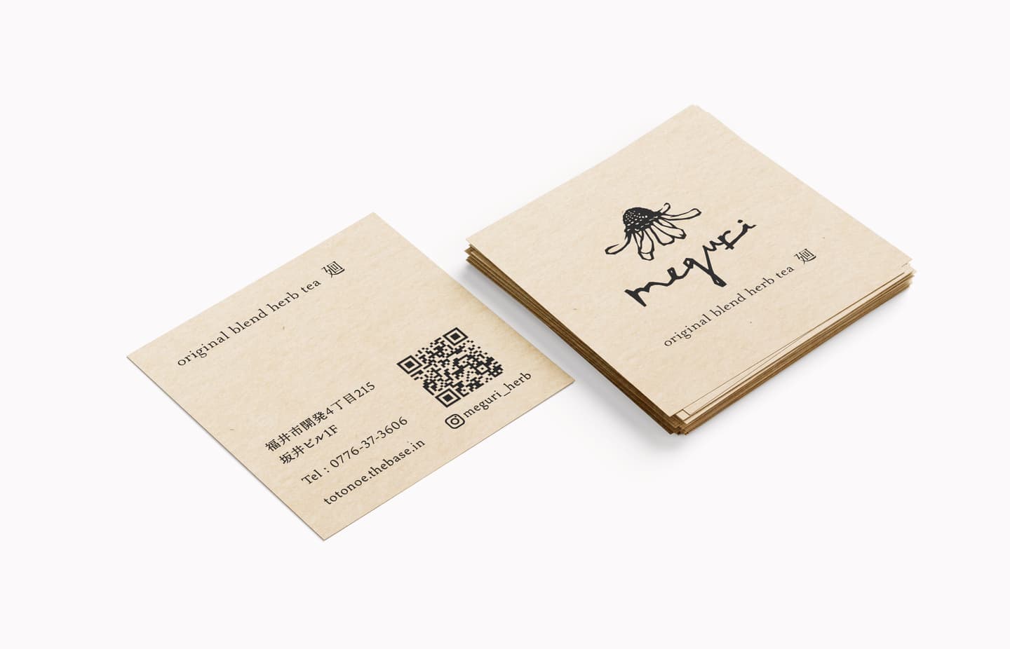 ハーブティ専門店「廻(meguri)」さまのショップカードを制作させていただきました。
