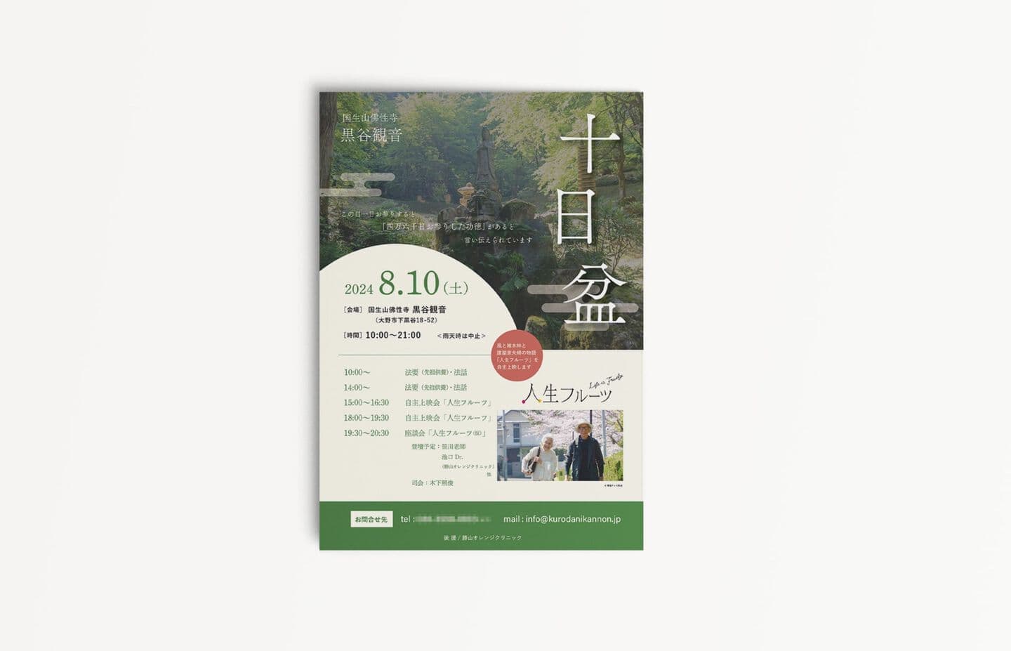 国生山佛性寺 黒谷観音さまの夏のイベント「十日盆」チラシを制作させていただきました。